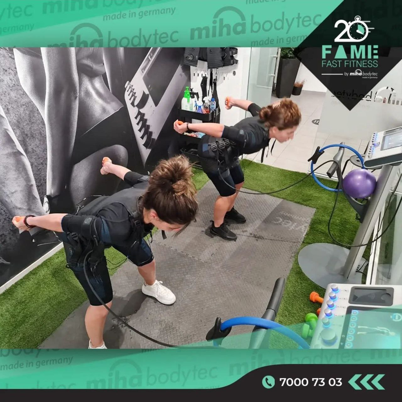 Miha-Bodytec EMS training activates all major muscle groups at the same time. This is not conventional gym training. It is time-efficient, focused and effective. In a single 20-minute session you can: